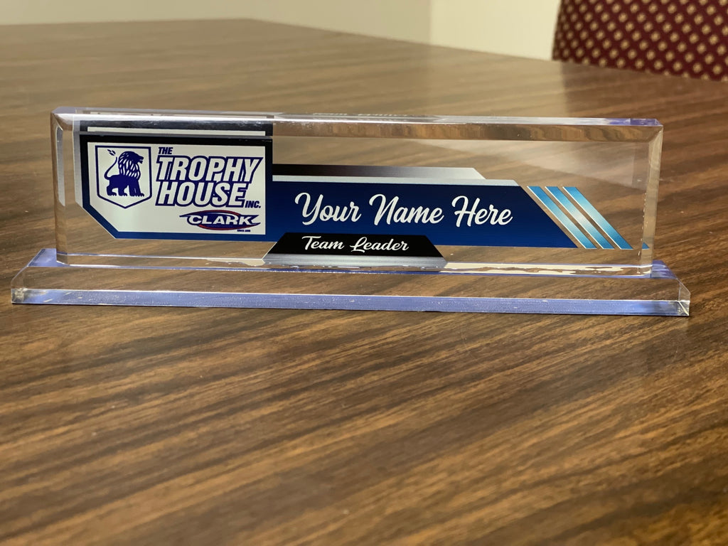 Whether used for employee names, job titles, or corporate awards, this elegant acrylic nameplate makes a stylish and durable addition to any professional setting.